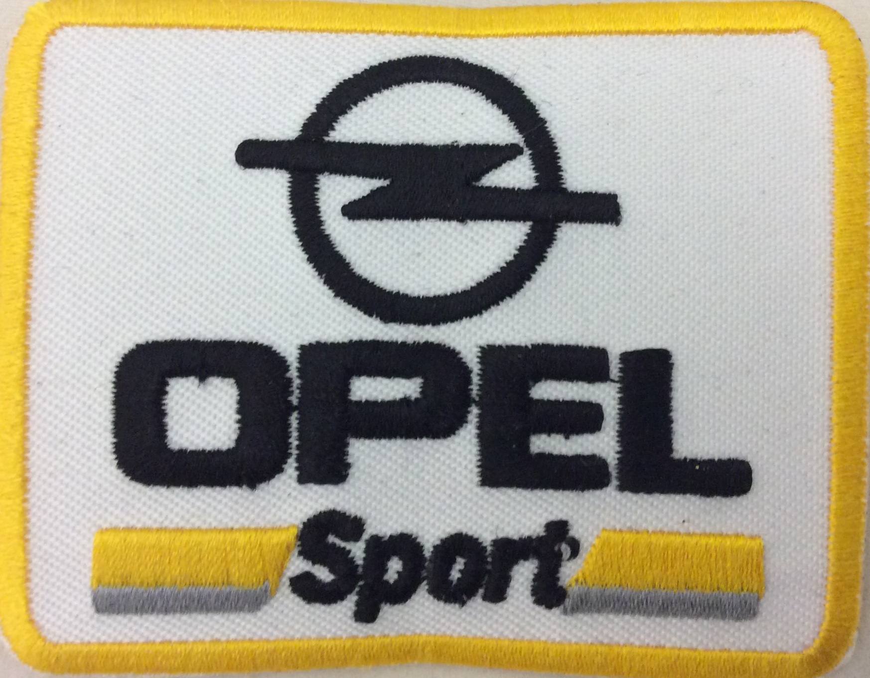 Kangasmerkki, Opel Sport . Merkin koko 7,5x6 cm. Merkin takana kuumaliima. Merkin voi kiinnittää joko ompelemalla tai silittämällä.