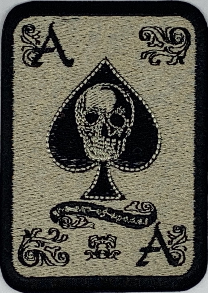Kangasmerkki Pääkallo pataässä Kangasmerkki 90x65mm musta hopea