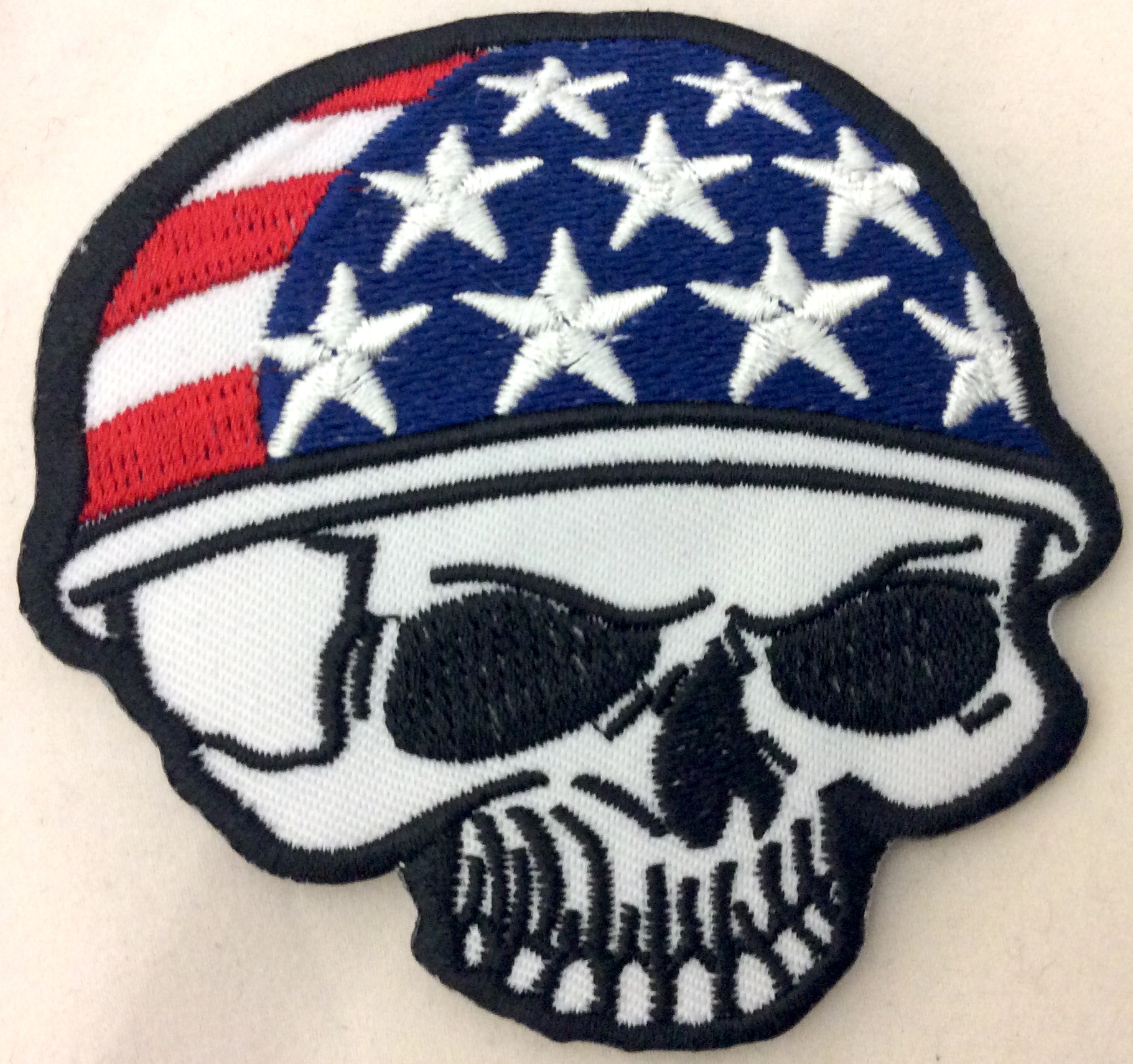 Kangasmerkki, Skull American Flag . Merkin koko 7,5x7 cm. Merkin takana kuumaliima. Merkin voi kiinnittää joko ompelemalla tai silittämällä.