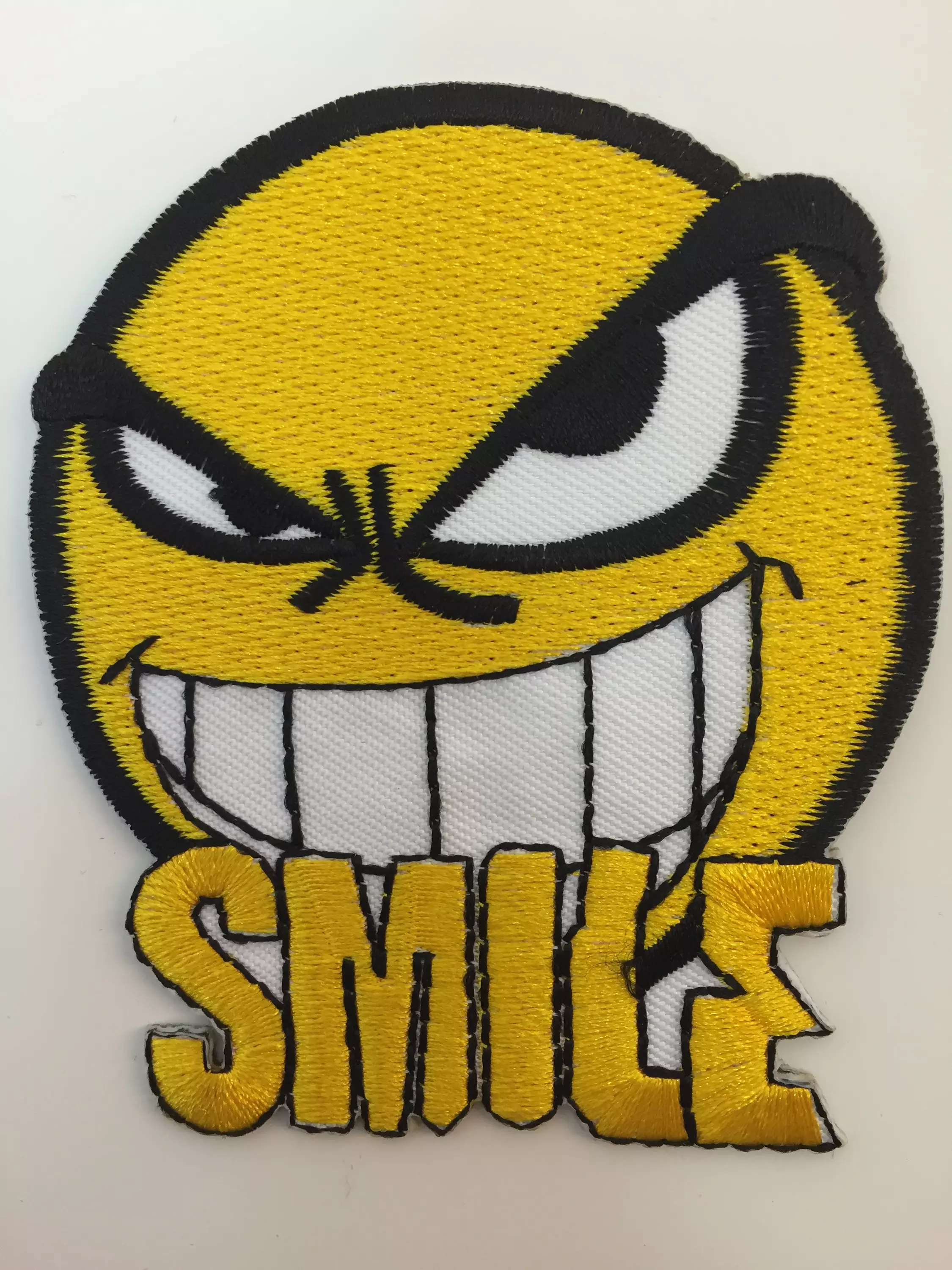 Kangasmerkki, Smile. Merkin koko 8,5 x 7,5 cm. Merkin voi kiinnittää joko ompelemalla tai silittämällä.
