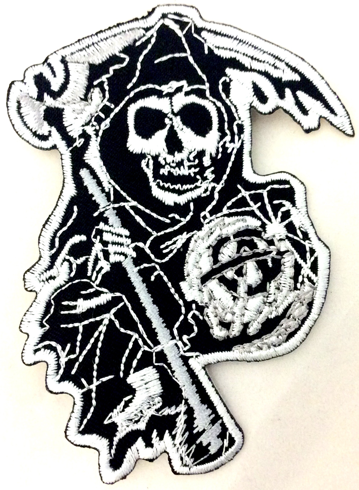 Kangasmerkki, Sons of Anarchy Samcro . Merkin koko 7x9 cm. Merkin takana kuumaliima. Merkin voi kiinnittää joko ompelemalla tai silittämällä.