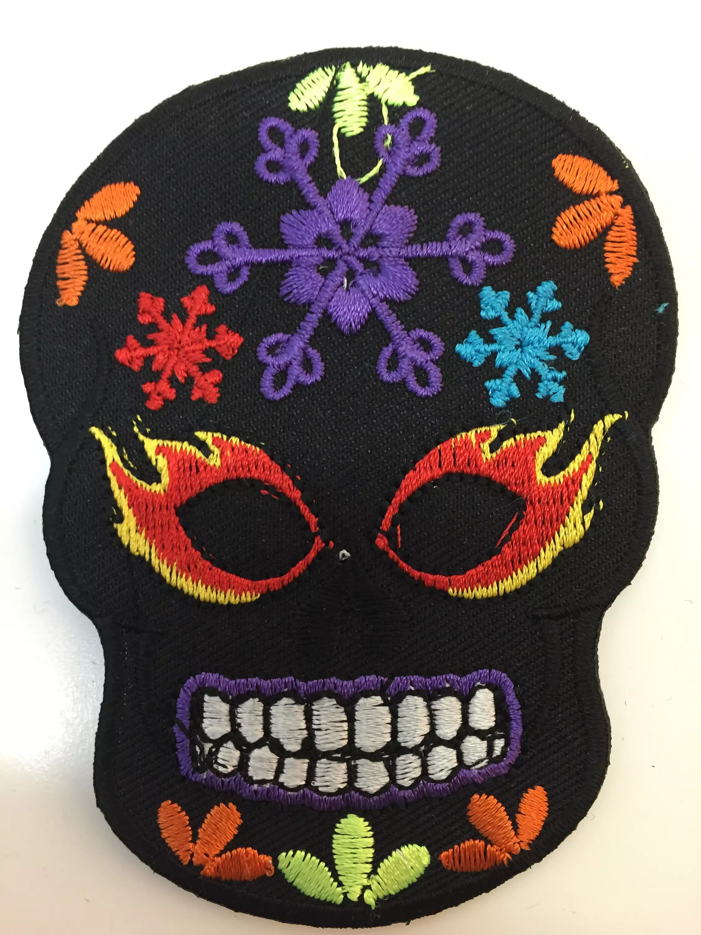 Kangasmerkki, Sugar Skull, musta. Merkin koko 9 x 7 cm. Merkin voi kiinnittää joko ompelemalla tai silittämällä.