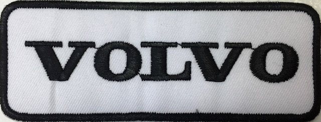 Kangasmerkki, Volvo. Merkin koko 11 x 4 cm. Merkin voi kiinnittää joko ompelemalla tai silittämällä.