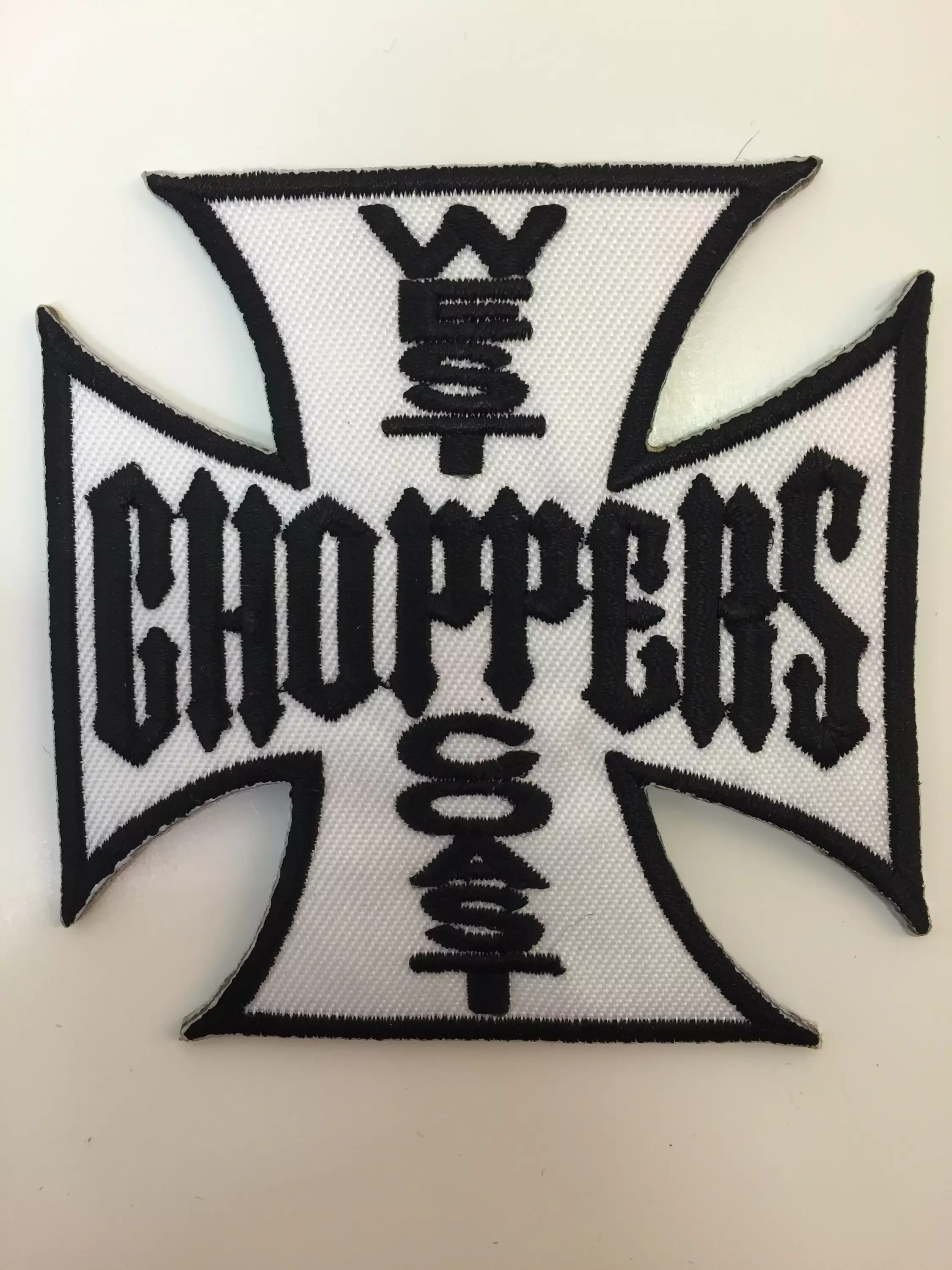 Kangasmerkki, West Coast Choppers. Merkin koko 7,5 x 7,5 cm. Merkin voi kiinnittää joko ompelemalla tai silittämällä.
