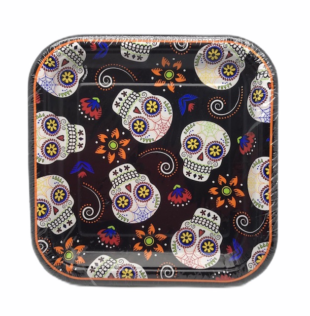 Kartonkilautanen, Sugarskull. Paketissa 10 kpl 17,4 cm x 17,4 cm lautasia.