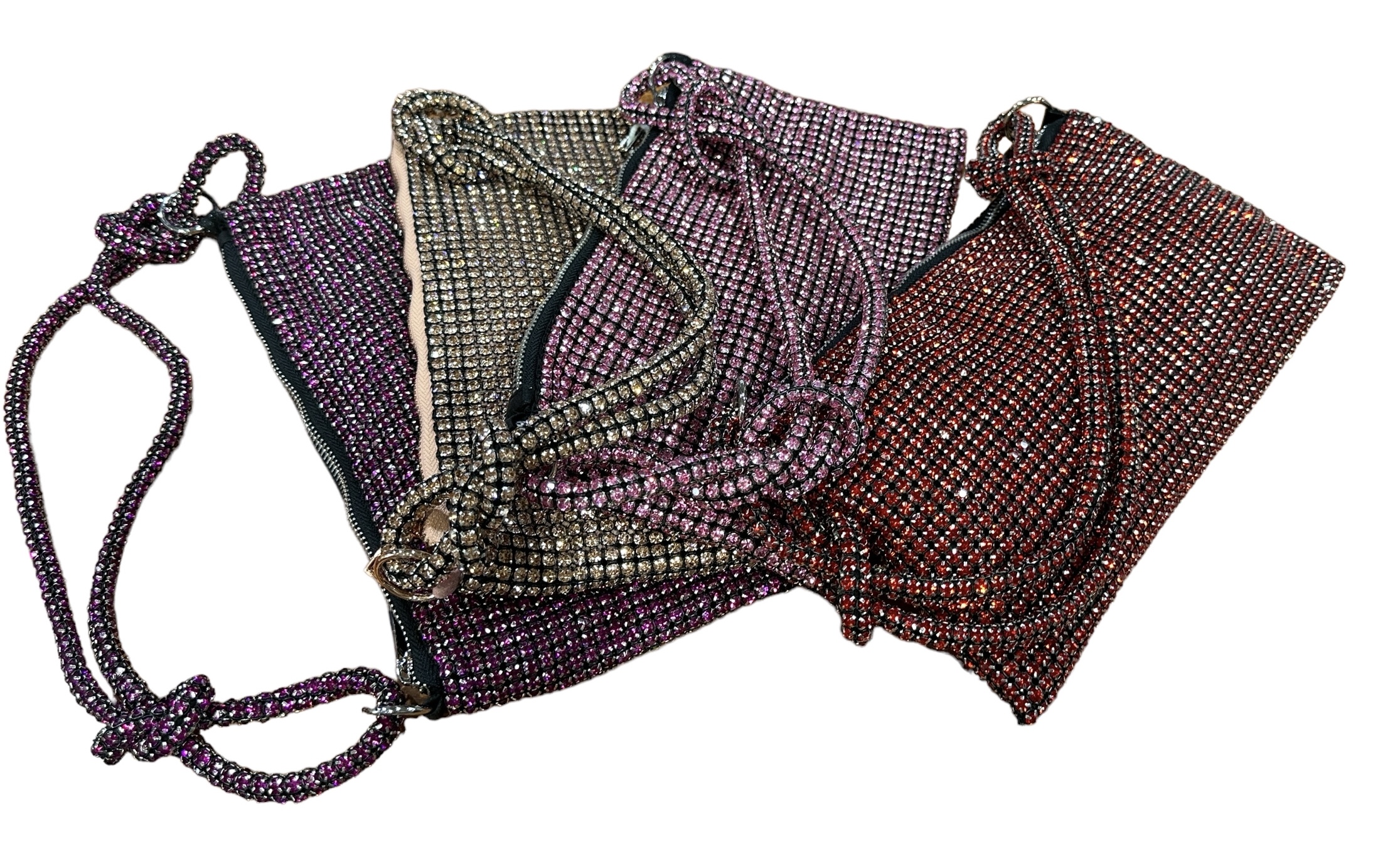 Käsilaukku Bling Bling. Strassikoristeinen käsilaukku, jossa mukana irroitettava ketjumainen olkahihna. Valitse neljästä eri väristä.