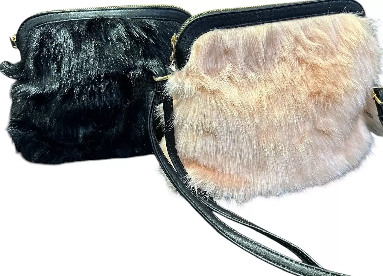 Käsilaukku tekoturkis 25 x 21 x 10 cm. Kaksi eri värivaihtoehtoa. Vetoketjullinen olkalaukku säädettävällä olkahihnalla. Laukun vuorissa on taskut molemmin puolin laukkua, toisessa myös vetoketju.