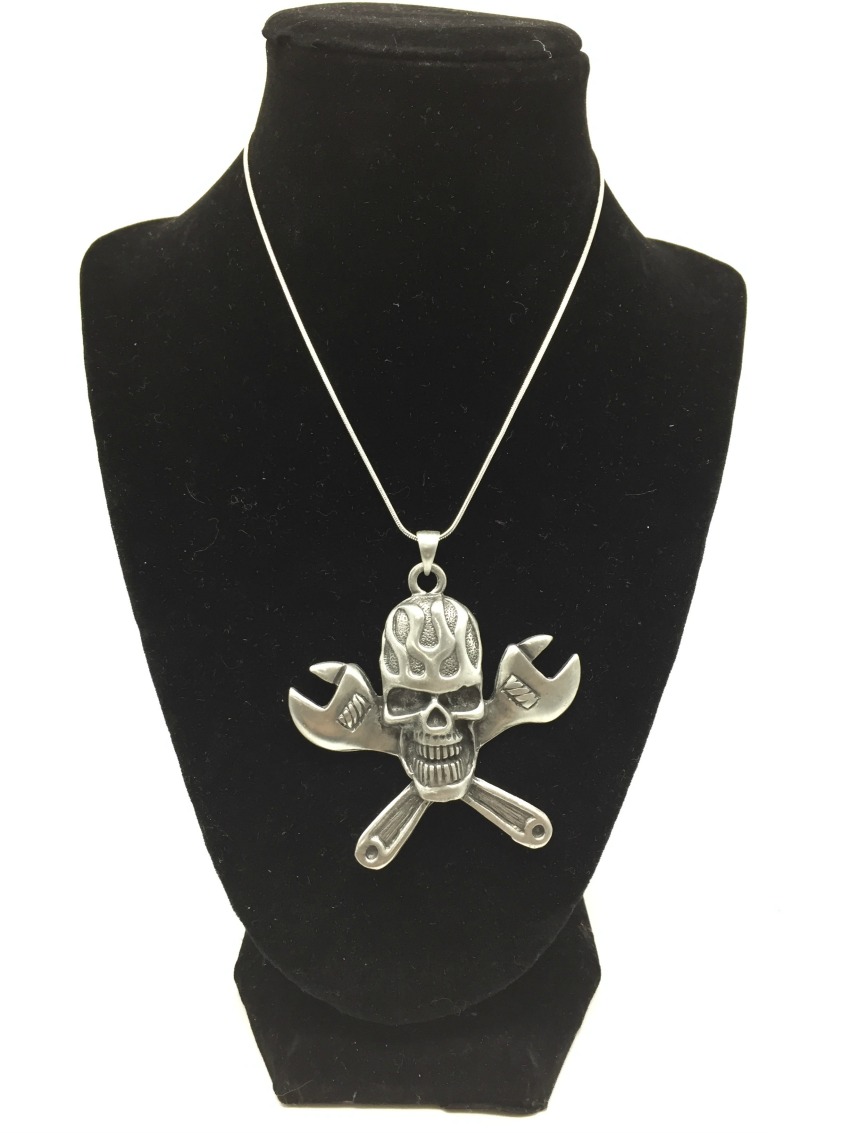 Kaulakoru, Wrench Skull. Riipuksen koko 5,5 x 6 cm ja mukana tulevan ketjun pituus 48 cm.