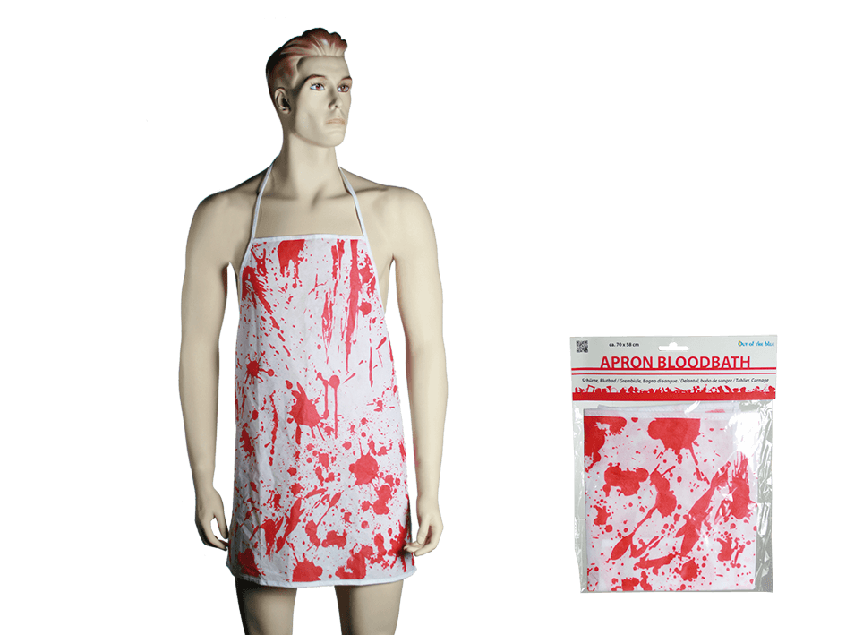 Keittiöessu, Bloodbath. Esiliinan koko n. 70 x 58 cm.