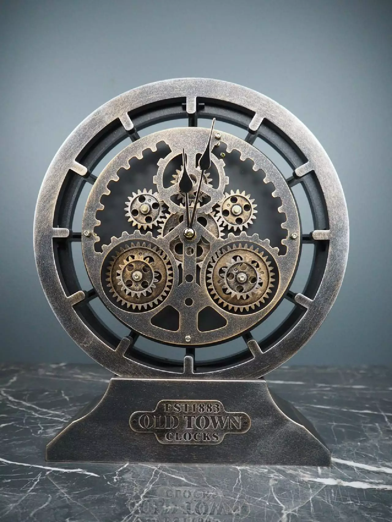 Kello, pöytäkello metalliratas. Tyylikäs metallinen Steampunk-henkinen pöytäkello. Kellon saa myös seinäkelloksi, koska kellotaulun saa helposti pöytätelineestä irti, ja kellon taustassa on ripustusruuville paikka valmiina. Kellossa liikkuvat rattaat ovat näkyvissä. Kellon koneisto toimii yhdellä AA-paristolla, rattaat pyörivät kahdella AA-paristolla (ei sisälly pakkaukseen).