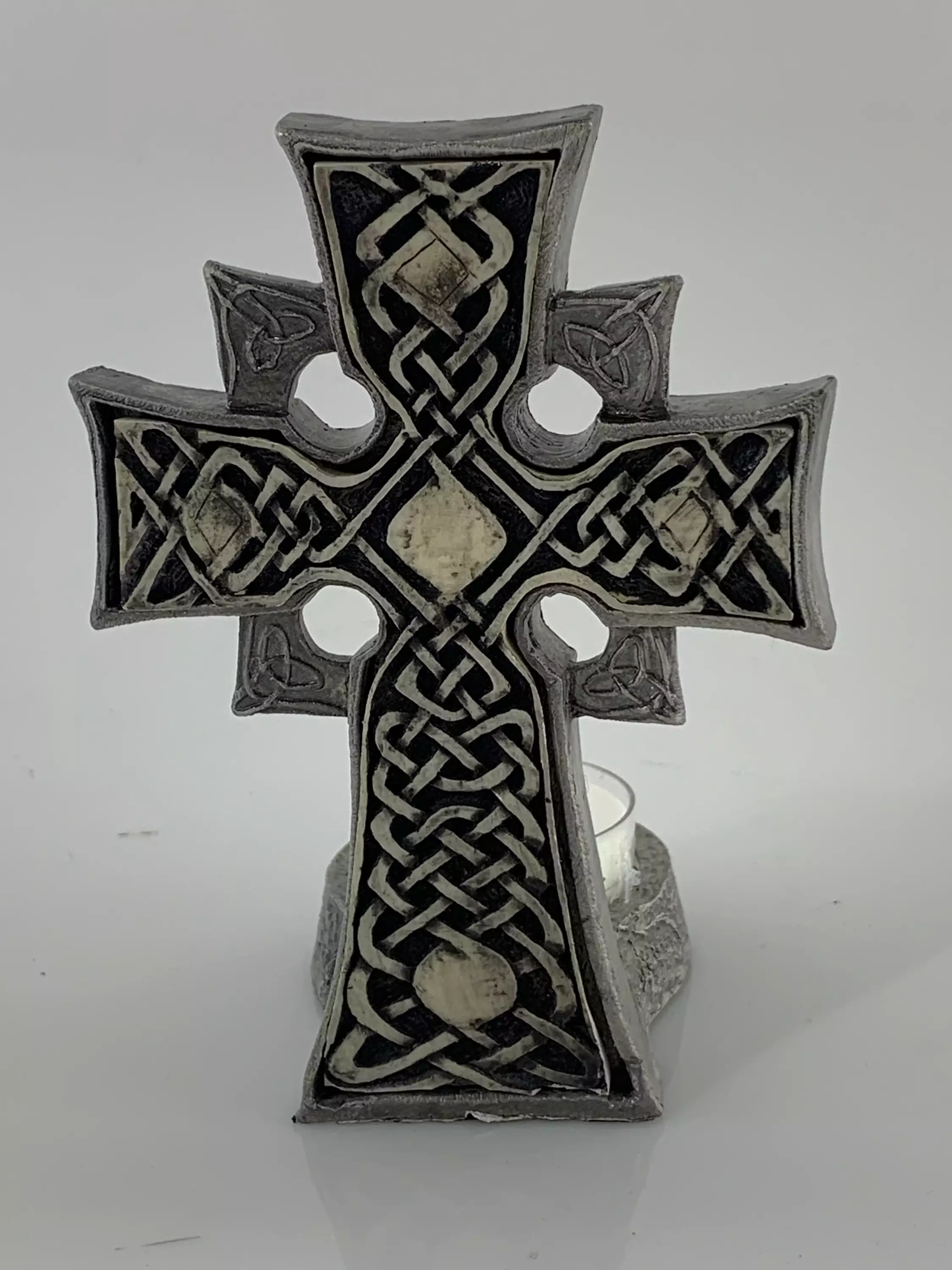 Kelttiristi kynttilänjalka, metallia