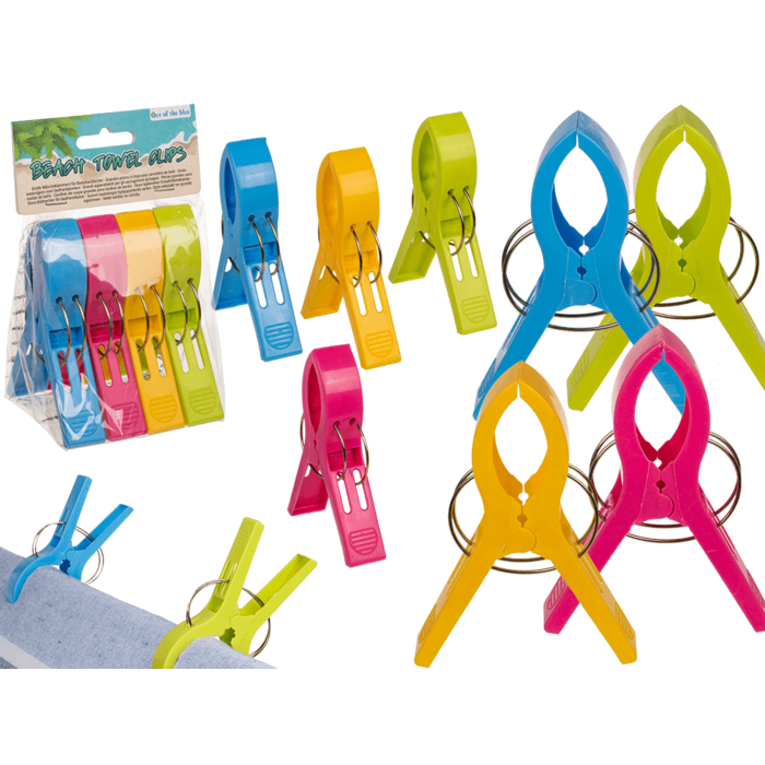 Muoviset, napakat klipsut on kehitetty pitämään rantapyyhe paikoillaan aurinkotuolissa napakallakin tuulella.