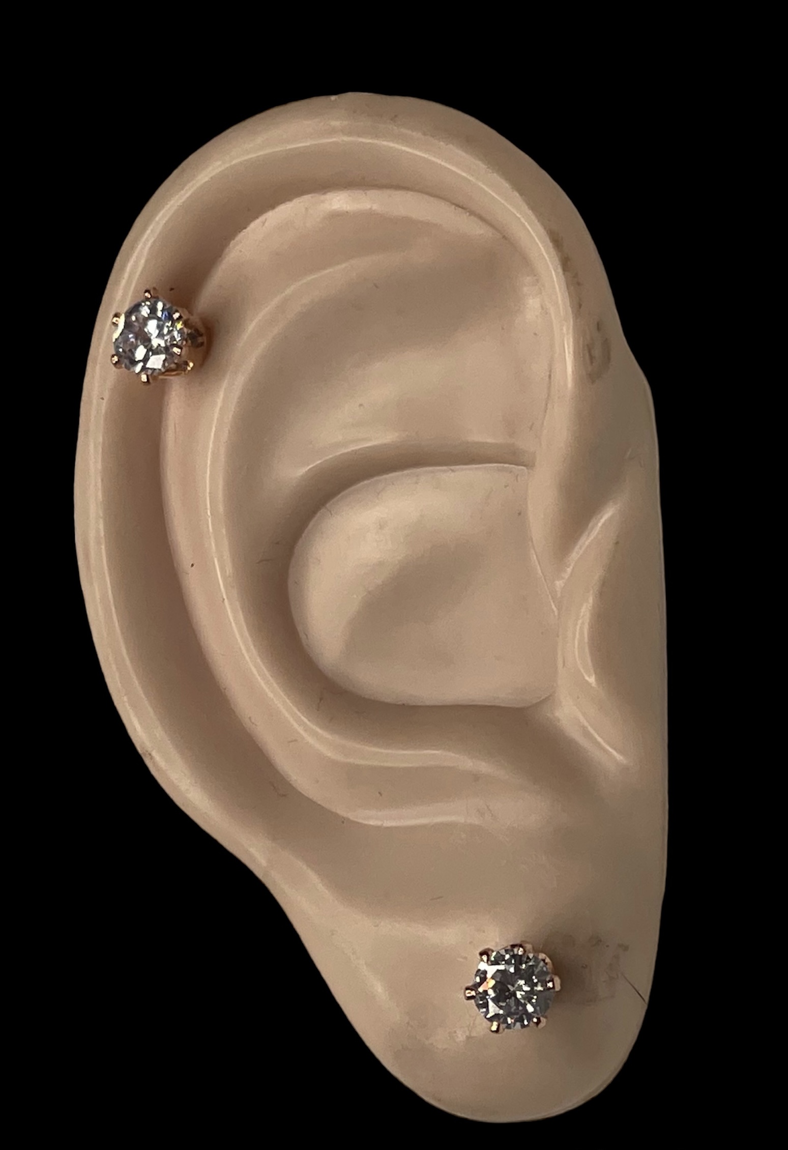 Korvakorut kirkas kivi 6 mm. Nikkelivapaat korvikset, ruusukullan värinen metalliosa, kirkaskivi. koruosan halkaisija 6 mm ja korkeus 6 mm.