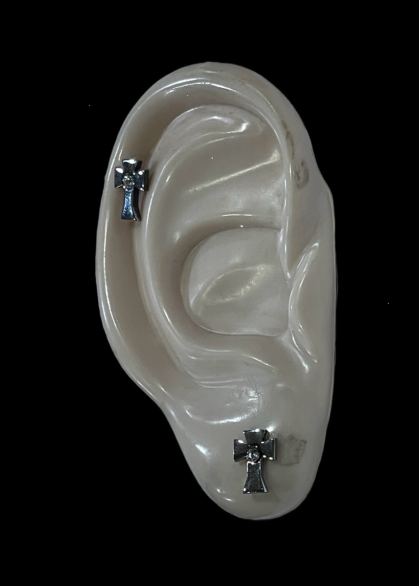 Korvakorut Kromiristi, kirkas kivi. Nikkelivapaat korvikset. Ristin mitat n. 6 mm x 10 mm.