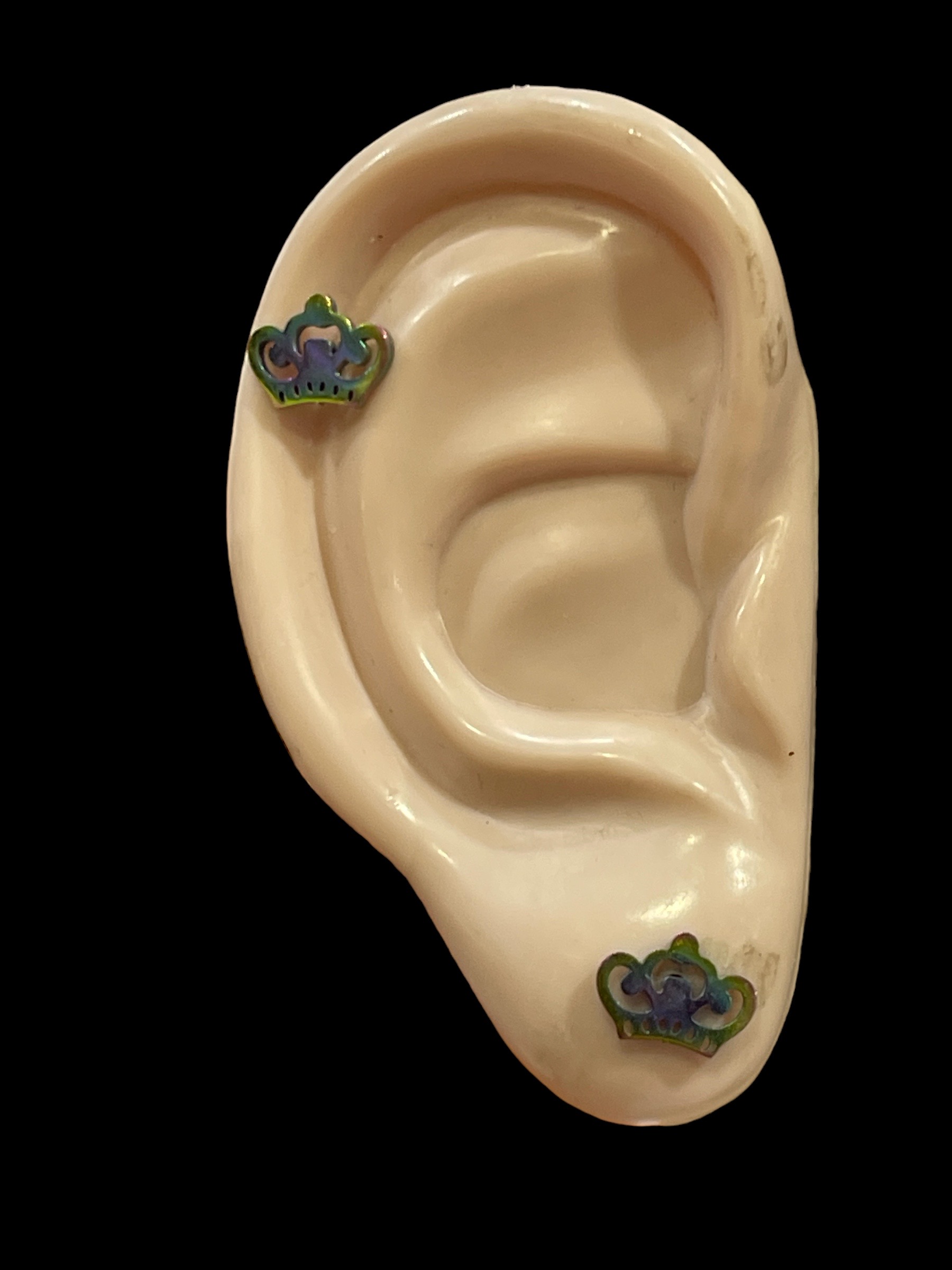 Korvakorut Moniväri Metallikruunu, Nikkelivapaa. Mitat 10 x 7 mm.