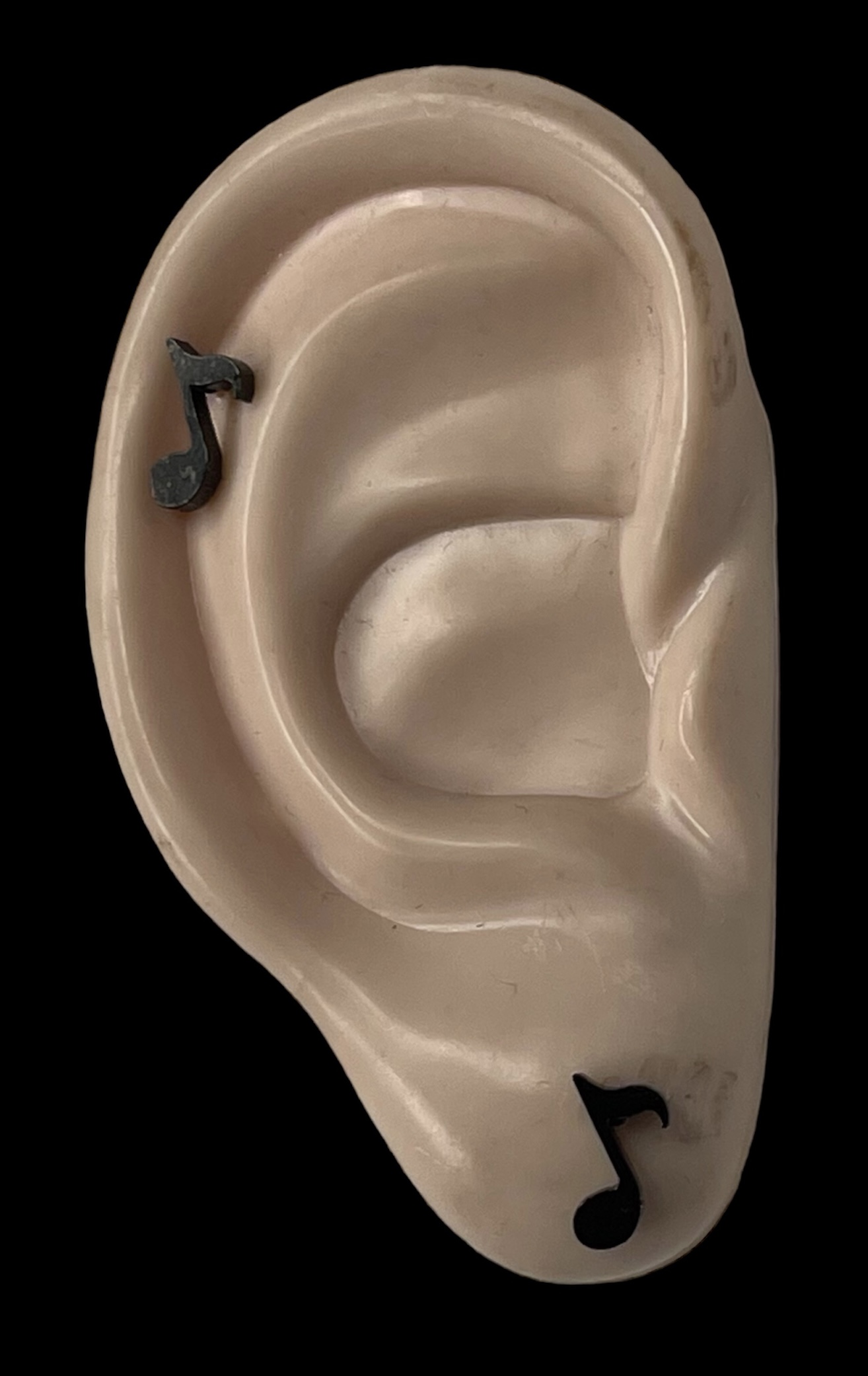 Korvakorut Nuotti, musta. Nikkelivapaat korvikset, 2 kpl. Nuotin korkeus n. 10 mm.