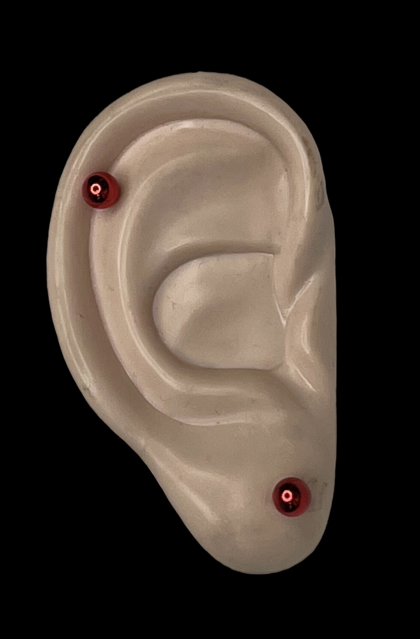 Korvakorut punainen metallipallo 5mm, nikkelivapaa.