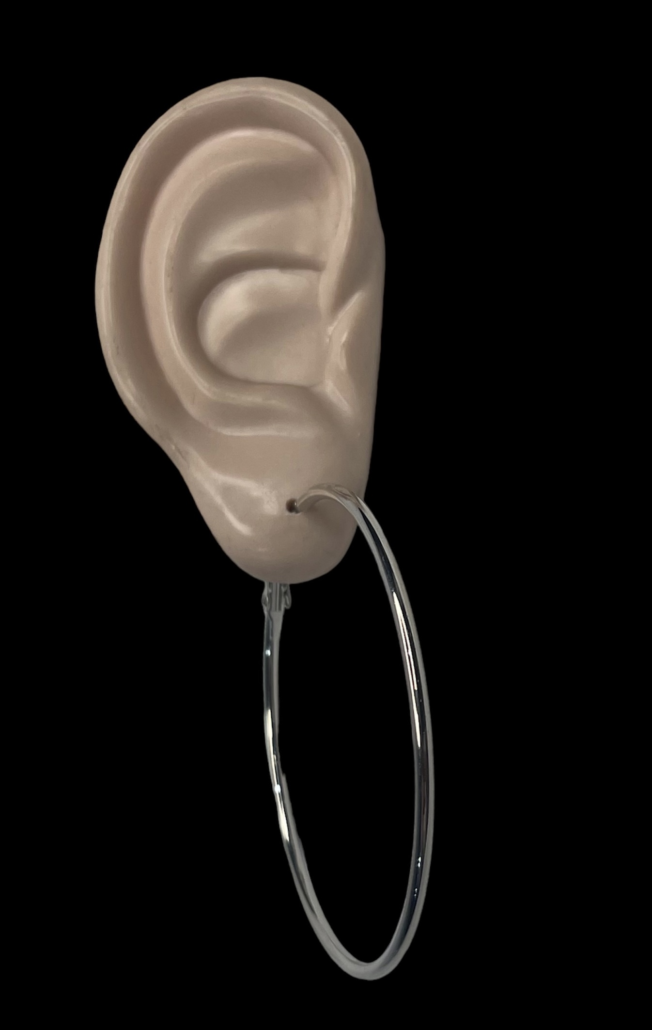 Korvarenkaat 60 mm, paksuus 2 mm. Hopeanväriset renkaat kätevällä klipsikiinnityksellä.