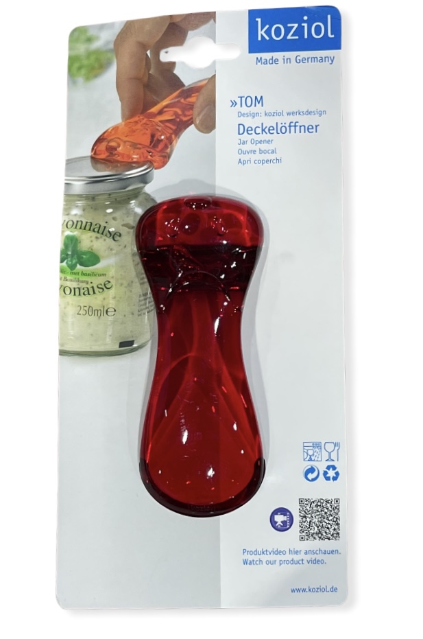 Koziol Tom purkinavaaja, punainen. Mitat 122 x 51 x 28 mm.