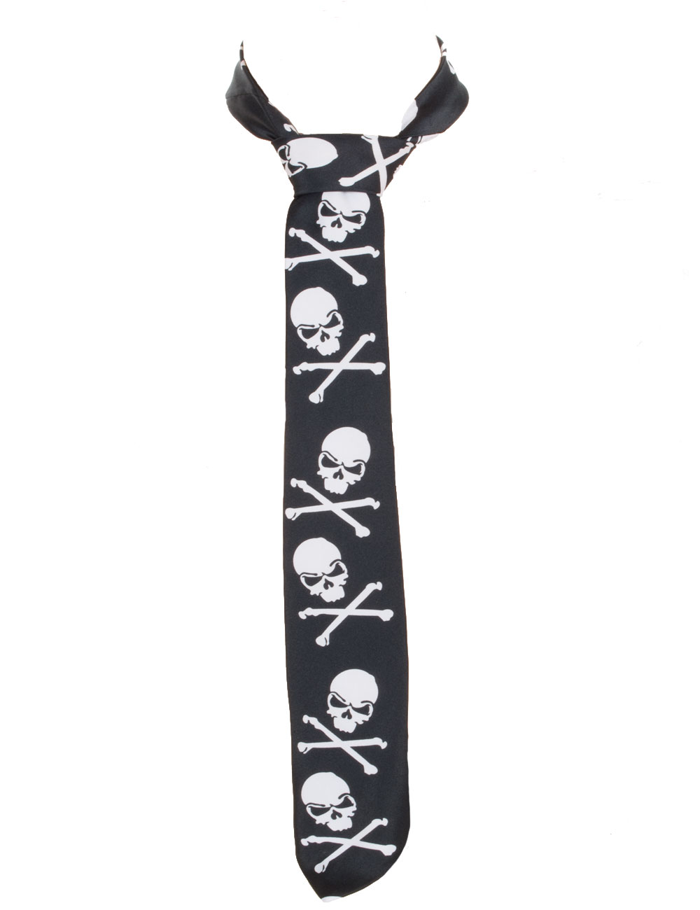 Kravatti, musta kravatti valkoisilla piraattikalloilla.