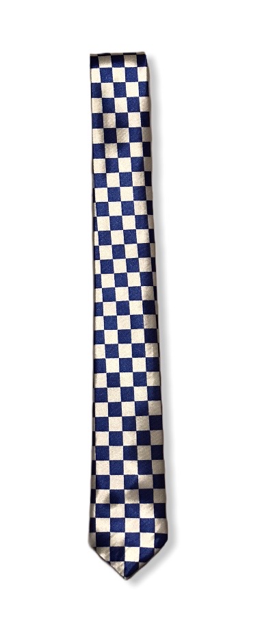 Kravatti, sini/valko ruutu. Käsintehty solmio, materiaali 100 % polyesteri.