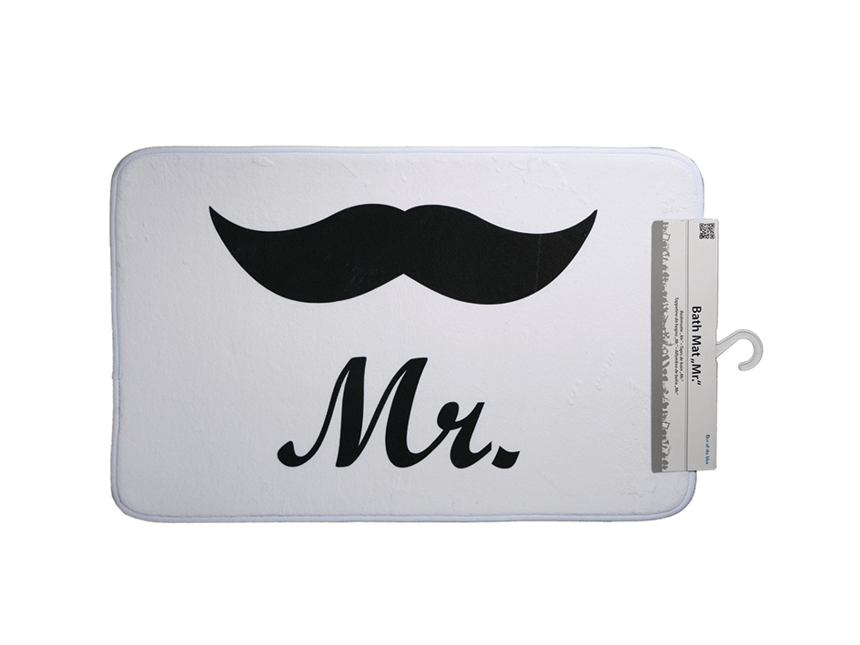 Kylpymatto Mr. 70 x 45 cm. Kylpyhuoneenmatto jossa viikset ja teksti "Mr.". Maton koko 70 x 45 cm. Materiaali 100 % polyesteria.