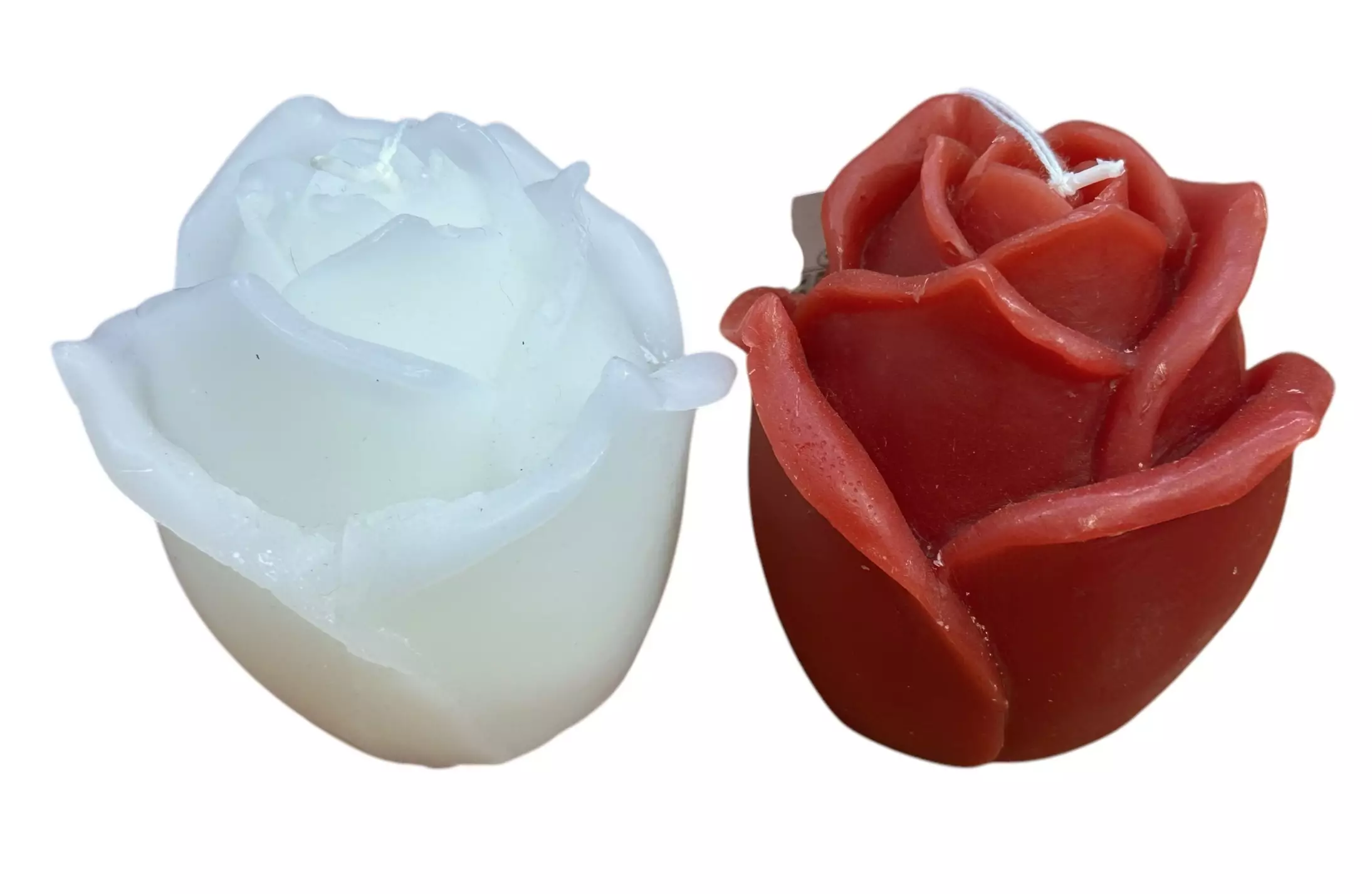 Kynttilä Ruusu, värivaihtoehdot punainen tai valkoinen. Koko n. 80 x 85 mm. paloaika 15 h.
