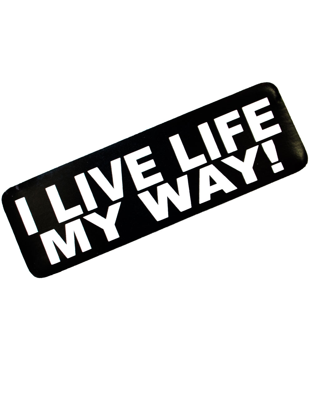 Kypärätarra, I live life my way. Tarran koko 9 x 3 cm.