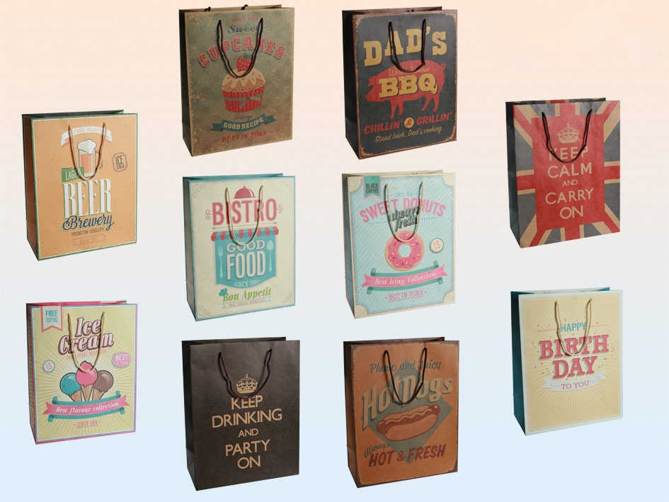 Lahjakassi, erilaisia kuoseja. Koko 33 x 26 x 12 cm.