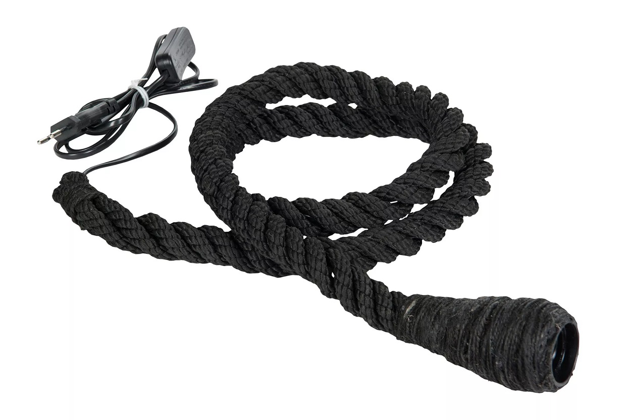 Lamppu, musta juuttiköysi. A Lot Decoration. Köyden pituus 150 cm, lisäksi 165 cm pitkä johto, jossa katkaisija. Valoköyteen sopii E27-kantainen polttimo, max 40W (ei sisälly pakkaukseen). 220-240 V (50 Hz), E27 MAX 40 W, CE-hyväksytty