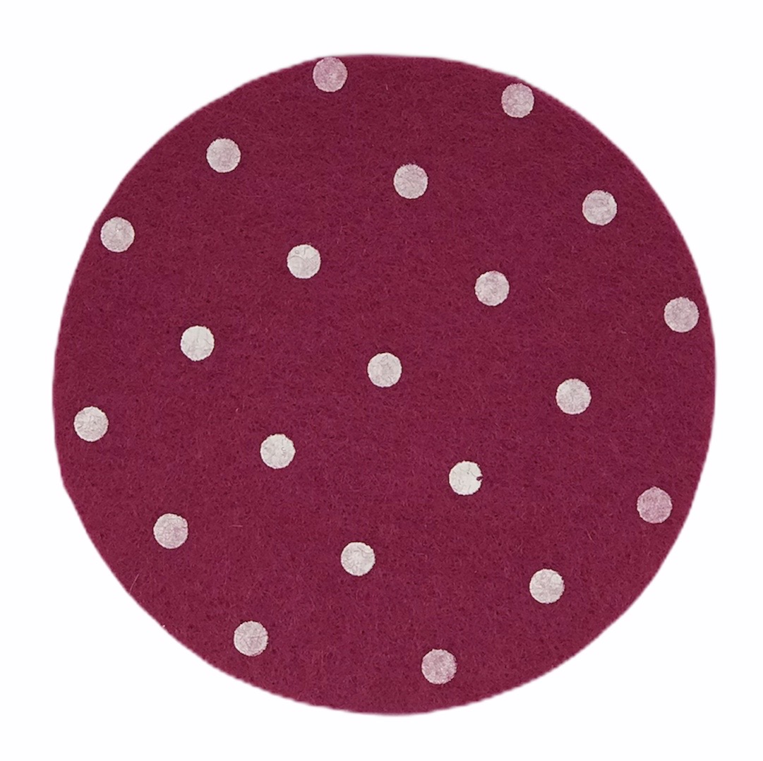 Lasinaluset, Pilkullinen huopa, pinkki. Pyöreä huopalasinalunen, halkaisija 10 cm. Paketissa 4 kpl.