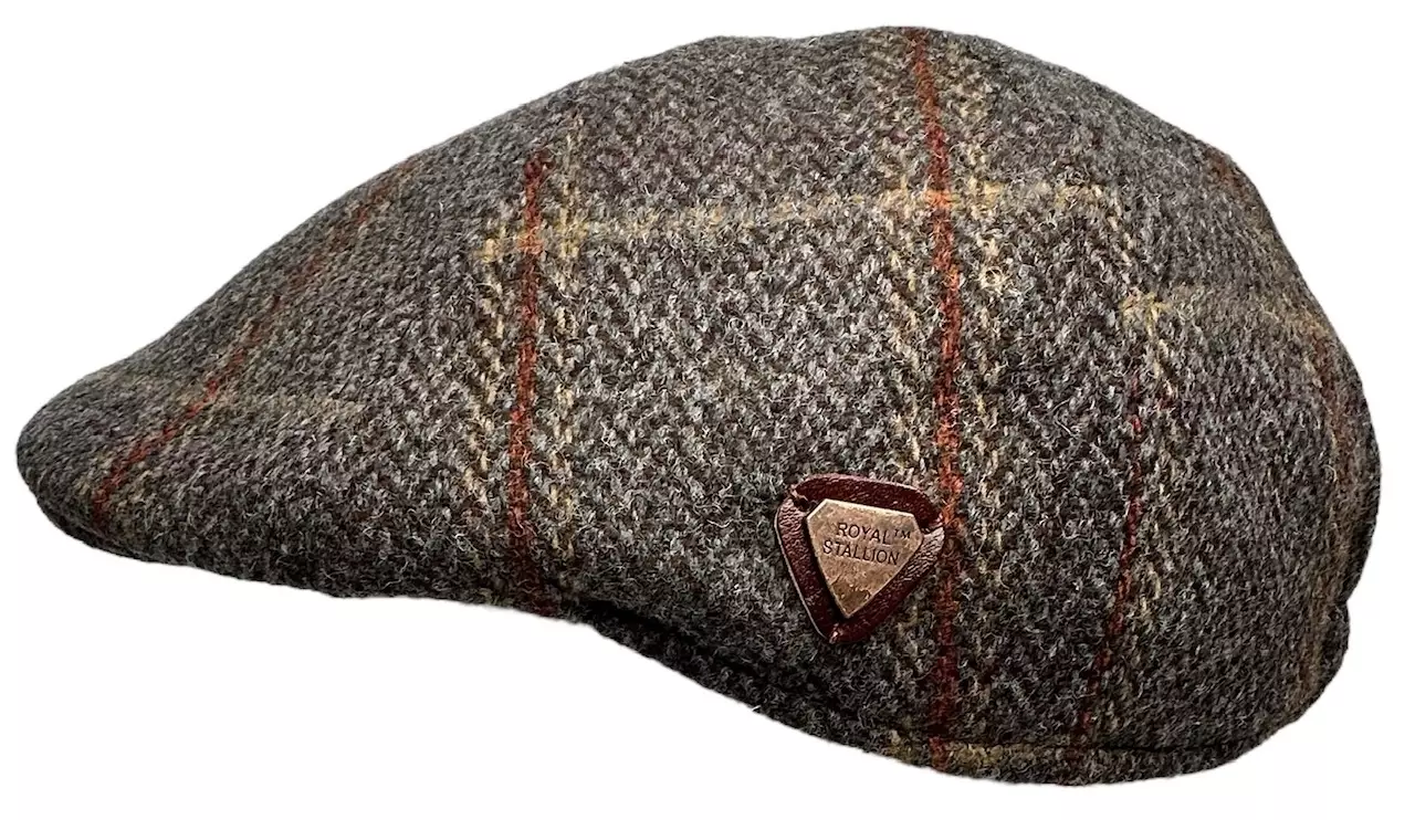 Lätsä Harmaa tweed ruutuviivoin. 6-paneelinen lätsä lämpimällä flanellivuorilla. 60 % villaa, 30 % polyesteria, 10 % sekoite.