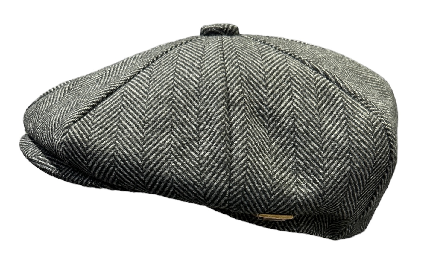 Lätsä Harmaa Tweed. Tummanharmaa tweed-kuvioinen lätsä, materiaali 30 % villa, 60 % polyesteri, 10 % sekoite. Flanellimainen lämmin vuori. Lätsän lipassa on neppari, jolla lätsän etuosan mallia pystyy säätämään.