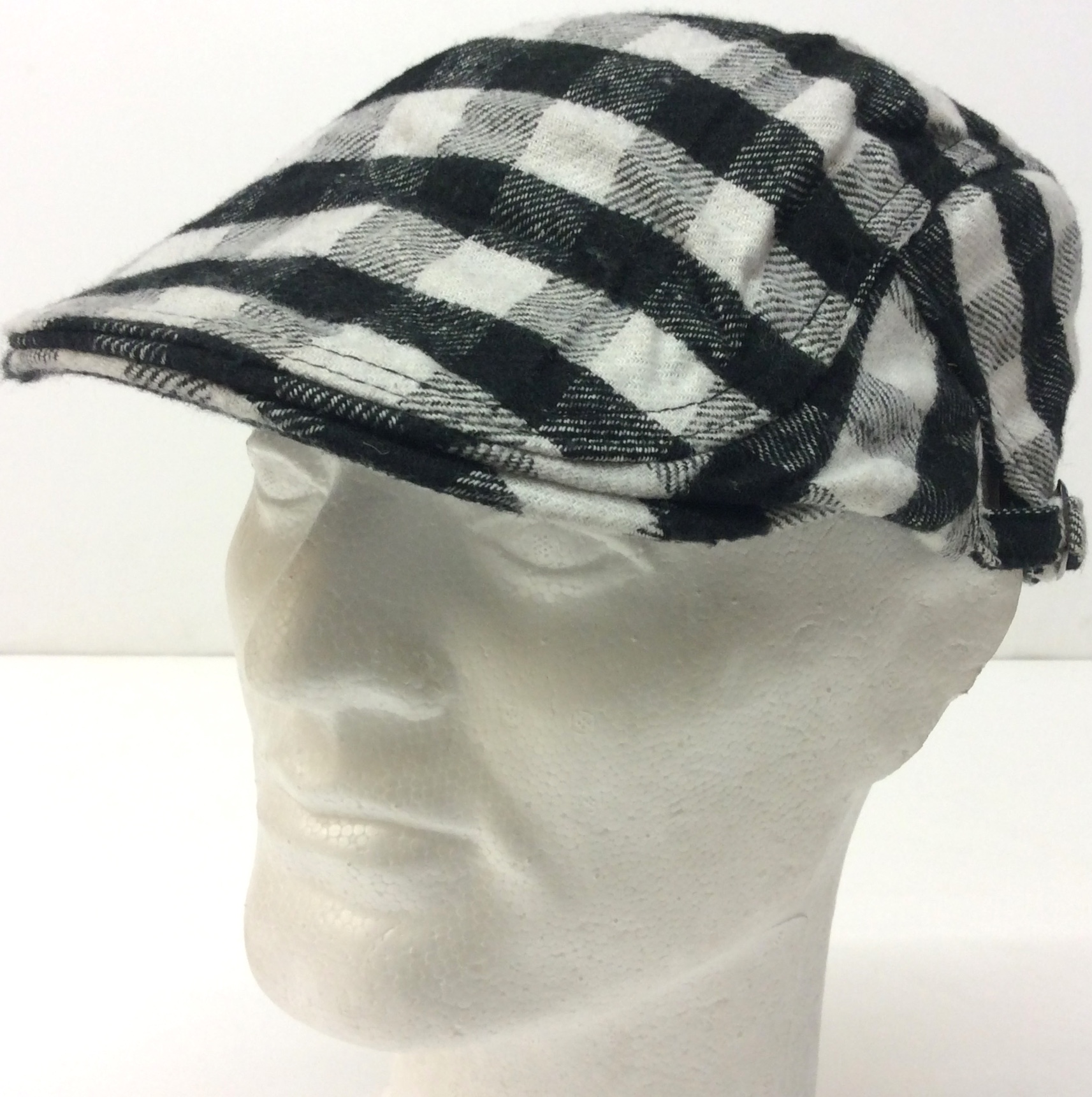 Lätsä, mustavalkoruutu flat cap. Onesize. Molemmilla sivuilla hieman säätövaraa.
