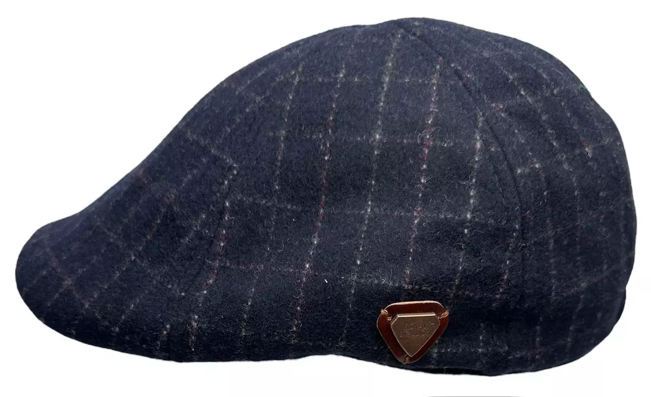 Lätsä Ruutu tummansininen. 6-paneelinen lätsä lämpimällä flanellivuorilla. 60 % villaa, 30 % polyesteria, 10 % sekoite.