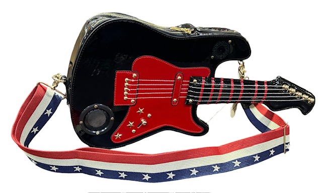 Laukku Kitara radio, irroitettavalla olkahihnalla. 54 x 26 x 5 cm, toimii 4 x AA-paristolla.