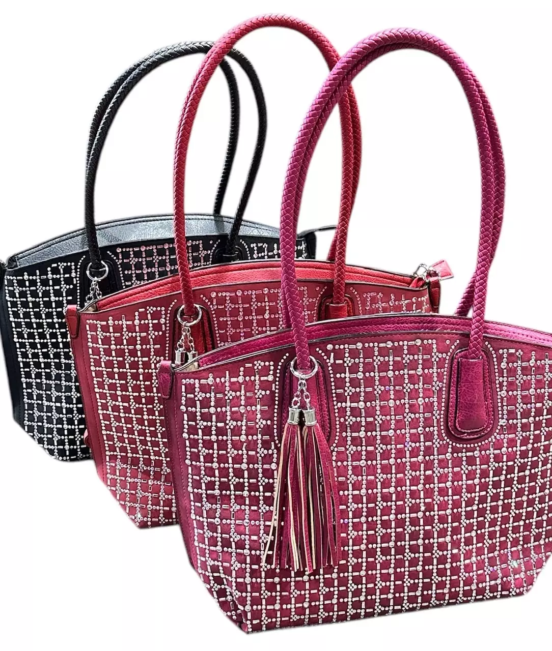 Laukku Timanttiruutu, kolme värivaihtoehtoa. Isokokoisessa laukussa on etupuolella koristekivistä muodostuva ruutukuvio. Takapuolella on vetoketjutasku pikkutavaroille. Laukun vuorissa on myös pikkutaskut vuorin molemmissa reunoissa. Varsinainen laukkuosa jakautuu kahdeksi isoksi avotilaksi keskellä olevan ison vetoketjutaskun ansiosta. Käsikahvat ovat kiinteänä, mutta olkahihna on irroitettava ja pituus on säädettävissä. Kiinteässä käsikahvassa on koristeena metallilenkissä roikkuva tupsupari. Laukun mitat 45 x 30 x 11 cm. Materiaali keinonahka.