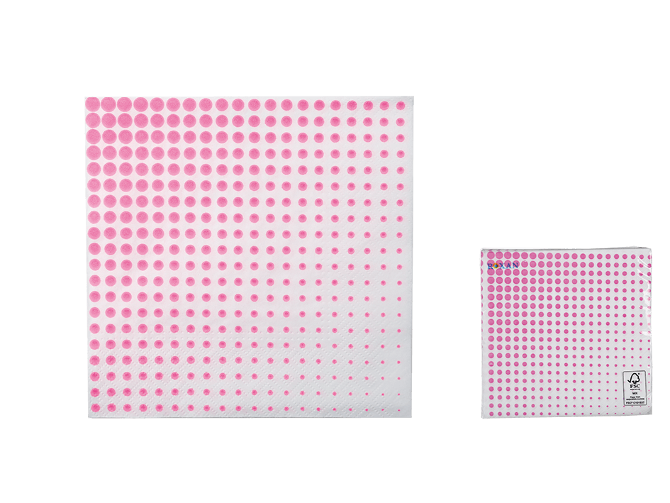 Lautasliina, Neon Pink Dots 20 kpl . Lautasliinojen koko 33 x 33 cm. Servetit ovat 3-kerroksisia ja niitä on aina yhdessä pakkauksessa 20 kpl.