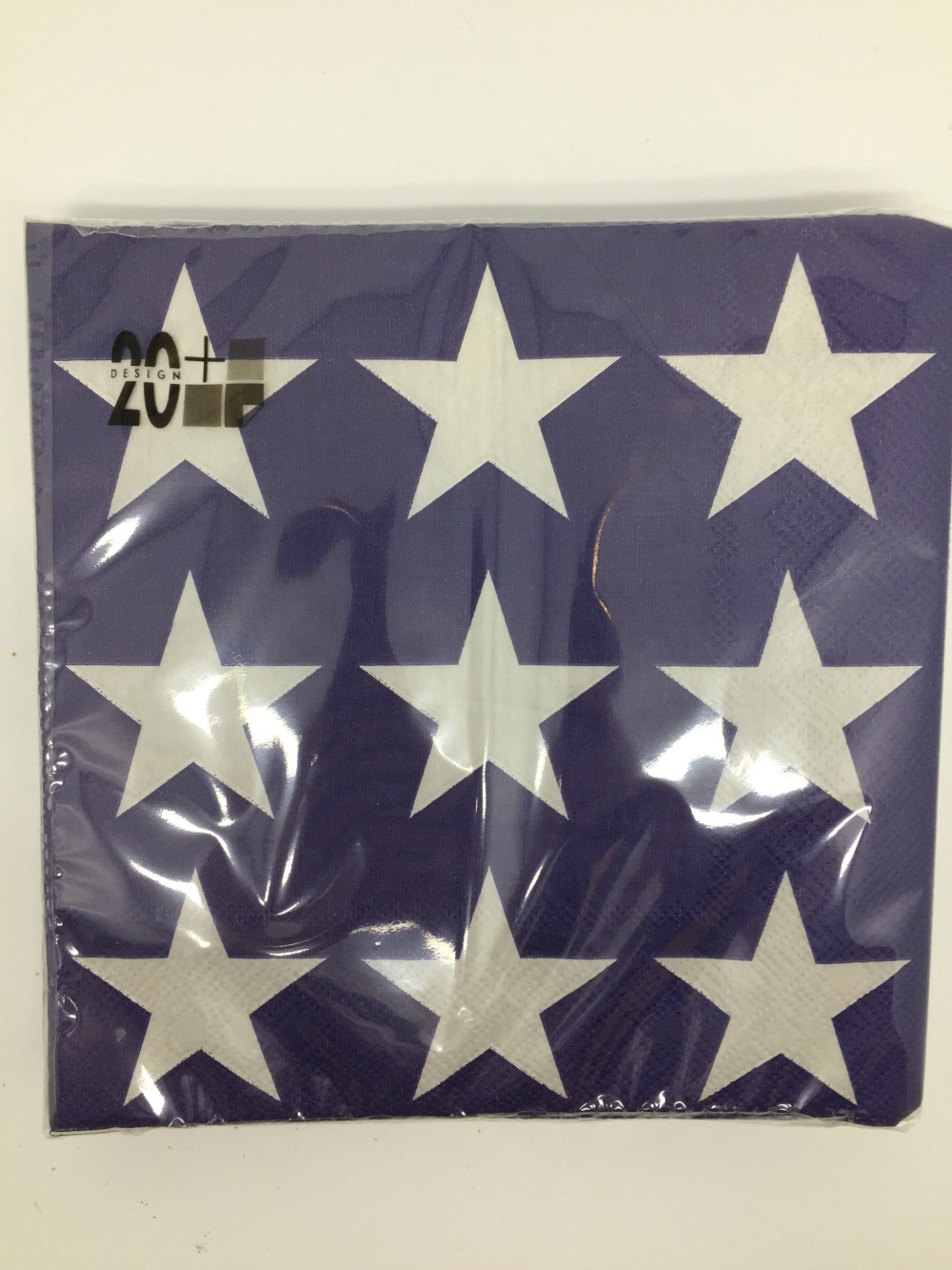 Lautasliina, Stars, cream / blue. Servettien koko 33 x 33 cm. Paketissa on 20 kpl servettejä. Kompostoitava.