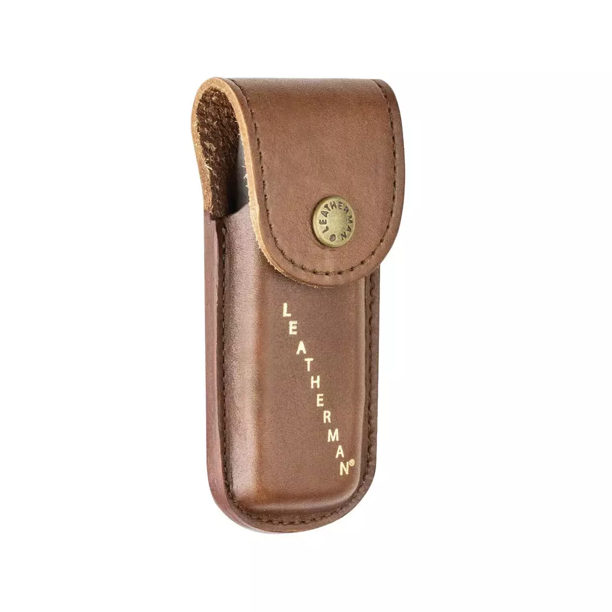 Leatherman Ruskea vyökotelo, S-koko. Nahkainen kotelo Leatherman-monitoimiveitselle. Kansiläppä nepparikiinnitteinen. Kotelon ulkomitat 52 x 110,5 x 21 mm.
