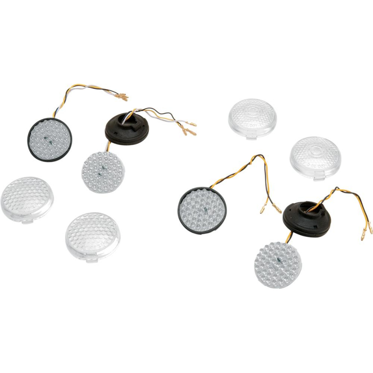 Drag Specialties Led Turn Signal Conversion Deuce-Style Amber Dual-Function Front Clear Honeycomb Lens Overview of Product: Updates conventional style signals to LED 40 amber LEDs per board Front are... Lue lisää