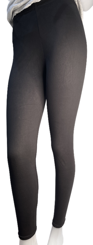 Leggingsit pehmeä musta mattatrikoo. Polyester 95% ja elastaania 5%. Hyvä jousto.
