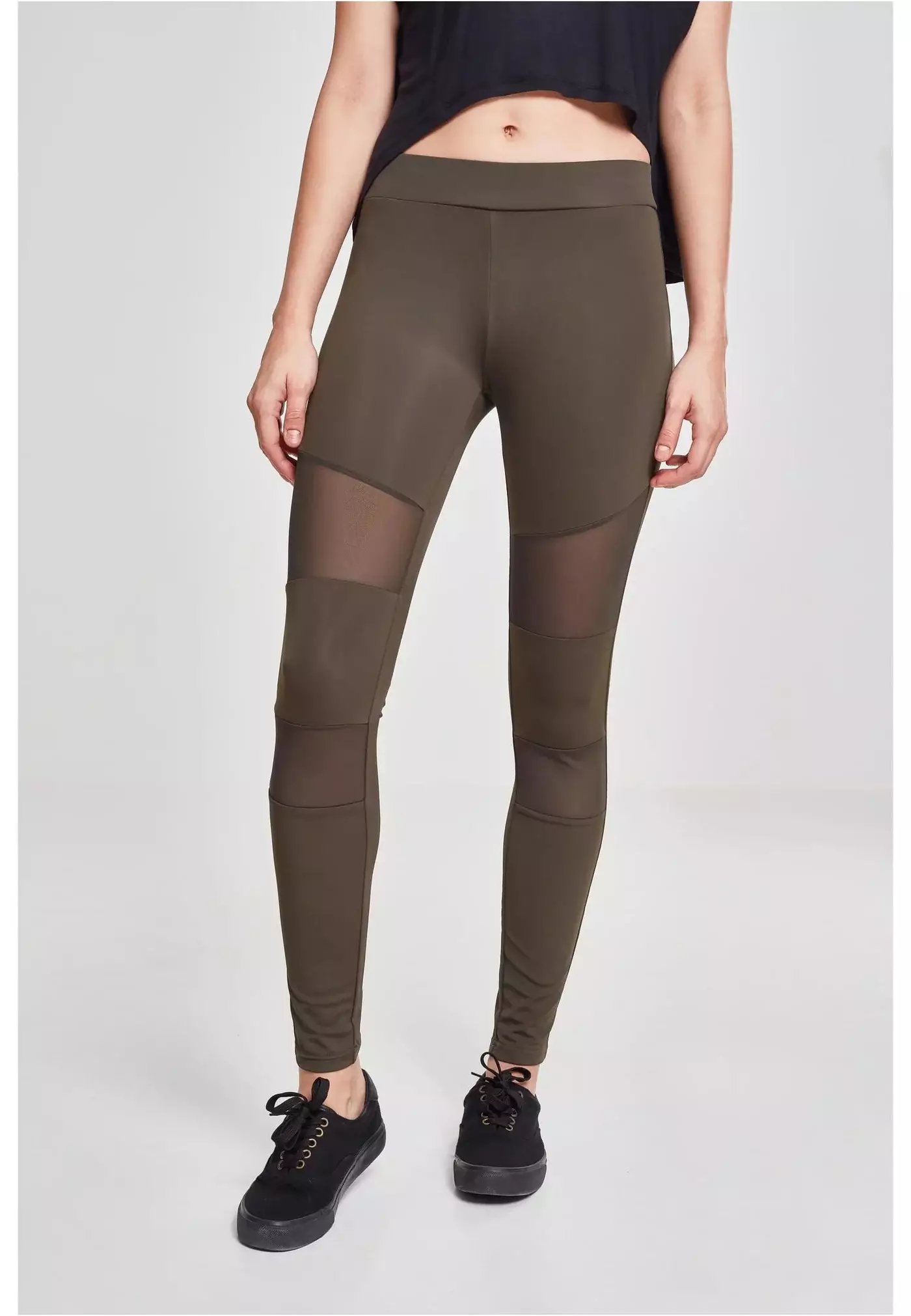 Leggingsit ruskea Teck Mesh leggingsit. Lahkeiden etuosassa läpikuultavat mesh-raidat.