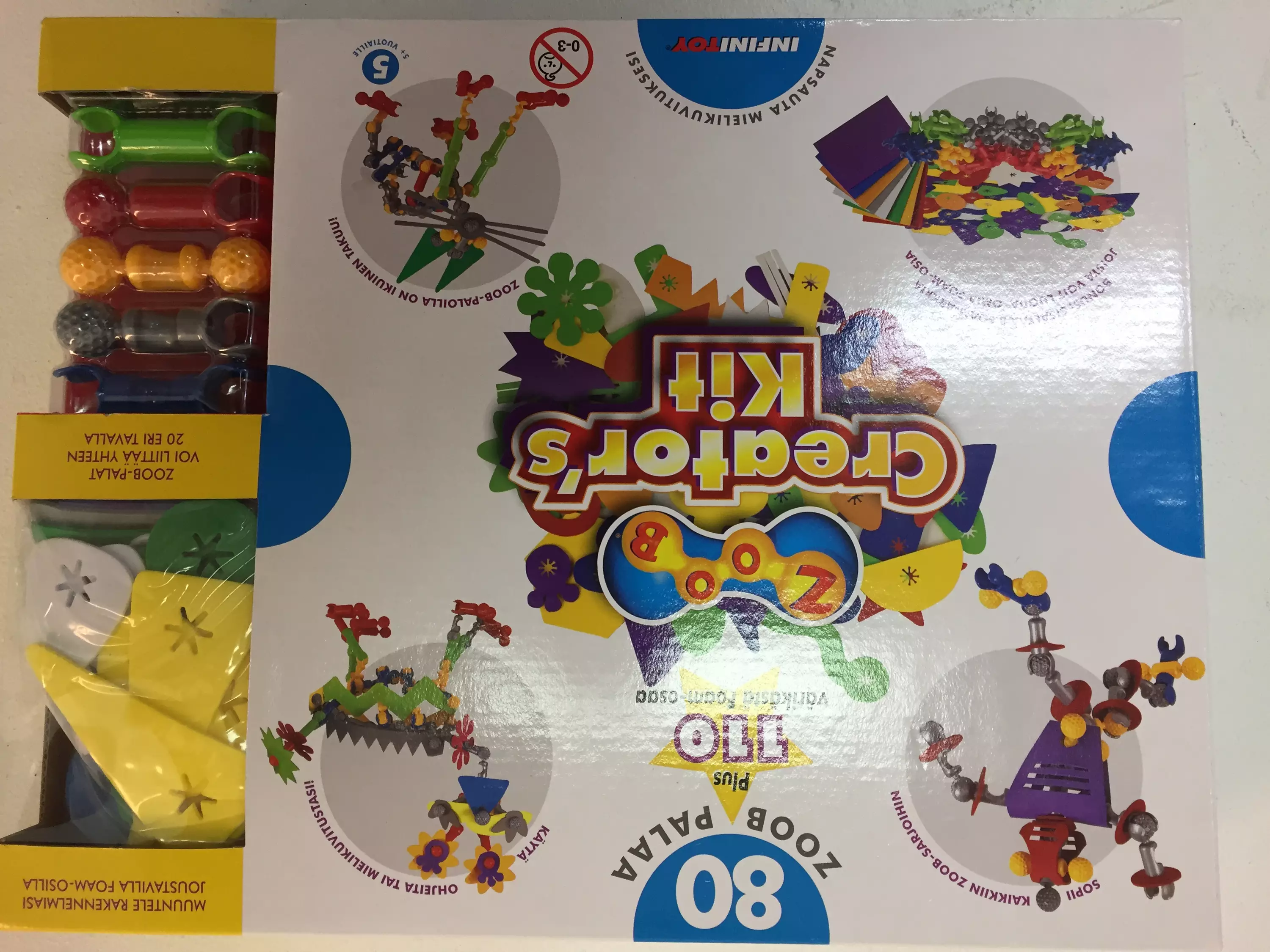 Lelusetti Zoob Creators Kit 80 palaa . Paketti sisältää 80 Zoob palaa ja 110 värikästä foam-osaa. Lisäksi mukana tulee 8 foam-arkkia, joista voit luoda omia foam-osia. Sopii kaikkiin Zoob-sarjoihin. Paketin mukana tulee 5 erilaista ohjekirjaa.