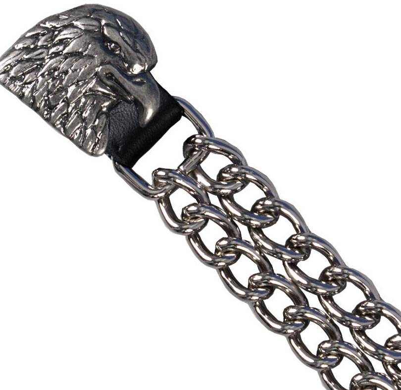 Double Chain Vest Extender with Eagle Head medallion - Black leather and silver snap vest extender with silver chain.