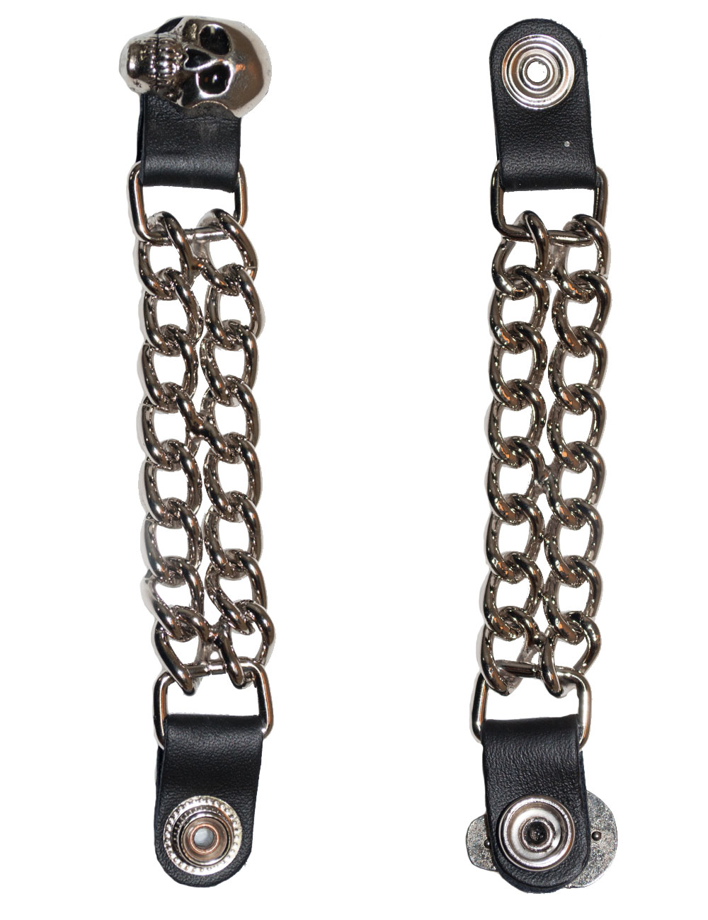 Liivilukko, Hot Leathers, Skull. Näyttävä liivilukko nepparikiinnitteiseen nahkaliiviin. Näillä saa näppärästi myös lisää vyötärönympärys senttejä liiville! PITUUS =15cm