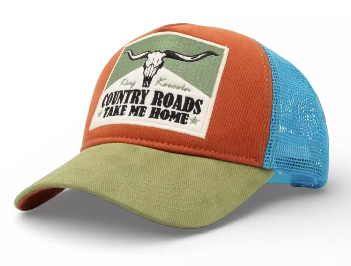 Lippis Country Roads. Lippis trucker-mallia. Takaosa ilmavaa verkkoa. Koko on säädettävissä takaa.