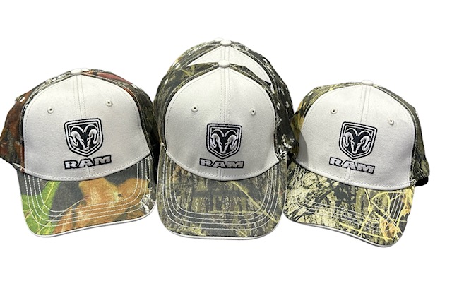 Lippis Dodge Ram. Kaarevalippainen lippis, jonka etupaneeli on vaalea beige ja siinä on Dodge Ram brodeeraus. Lippiksen takaosa on vihertävän kirjava. Sävy ja kuvio saattaa vaihdella eri lippisten välillä. Säädettävä koko, säätö tarraremmillä.