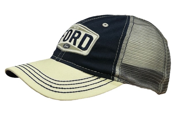 Lippis Ford, kolmiväri. Lippiksen etupaneeli tummansininen, jossa Ford-merkki. Lipan päällipuoli vaalea, takaosa harmaata verkkoa. Kaareva lippa. Säädettävä koko Snapback. Official Licensed product.