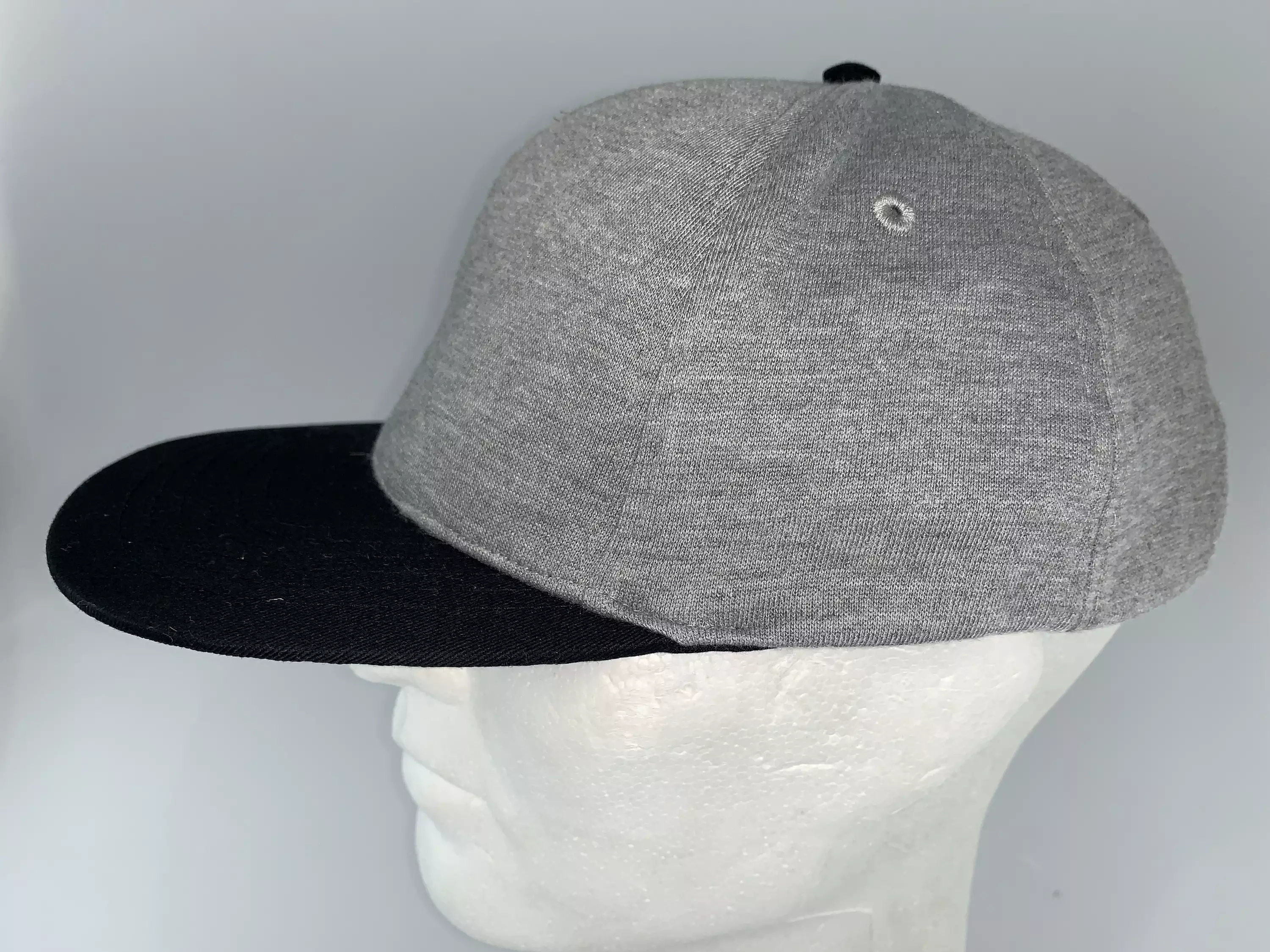 Lippis suoralippa, harmaa trikoo osa ja lippa jämäkkä musta. Snapback säätötakana.